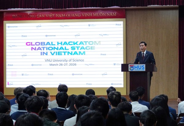 Trong hai ngày 26–27/3/2026, tại Trường Đại học Khoa học Tự nhiên (ĐHKHTN), Đại học Quốc gia Hà Nội, vòng thi cấp quốc gia của cuộc thi “Global HackAtom – National Stage in Vietnam” đã chính thức diễn ra. Global HackAtom là cuộc thi quốc tế do Tập đoàn Năng lượng nguyên tử Nhà nước Nga (ROSATOM) khởi xướng và tổ chức, dành cho sinh viên nhằm kích thích những ý tưởng sáng tạo, ứng dụng công nghệ hạt nhân trong việc giải quyết các thách thức thực tiễn, đặc biệt trong lĩnh vực y học hạt nhân. Đây là lần đầu tiên cuộc thi được tổ chức tại Việt Nam, với sự phối hợp của Trường Đại học Khoa học Tự nhiên, Đại học Quốc gia Hà Nội (HUS-VNU), ROSATOM, Đại học Bách khoa TOMSK (TPU) và Viện Năng lượng nguyên tử Việt Nam (VINATOM). Cuộc thi có sự tham gia của 18 đội thi với gần 100 cán bộ hướng dẫn và sinh viên đến từ 10 trường đại học lớn trên cả nước (Hà Nội, Đà Nẵng và thành phố Hồ Chí Minh).