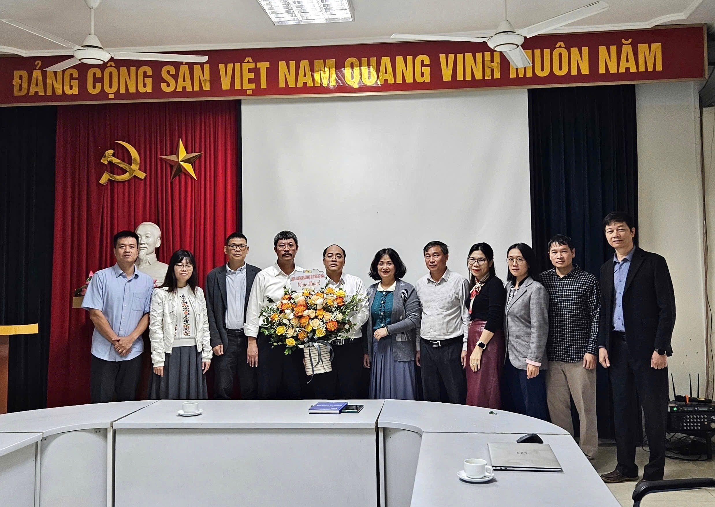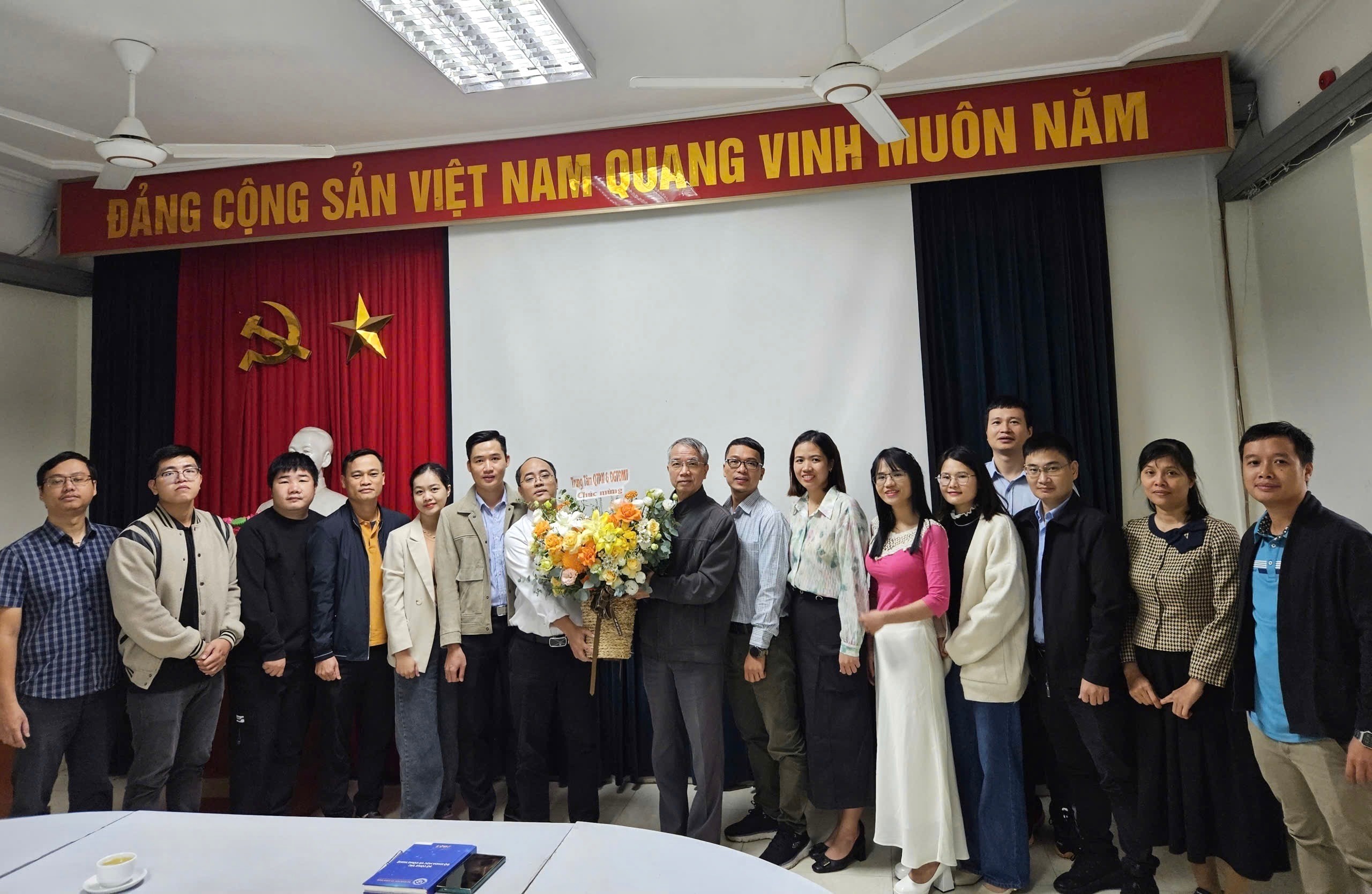 Tập thể TT QTPX&ĐGTĐMT tặng hoa chúc mừng ThS. Dương Văn Thắng